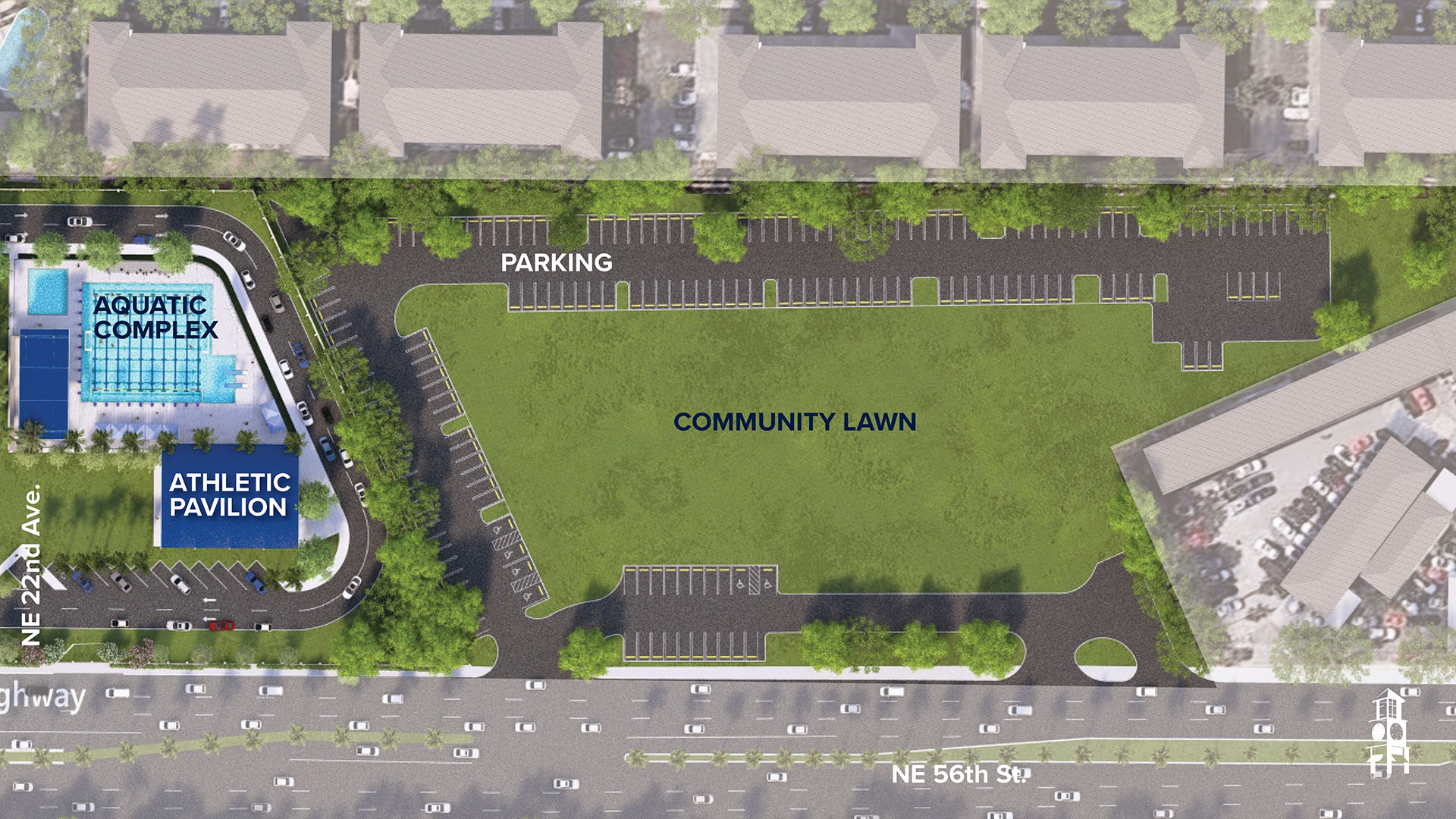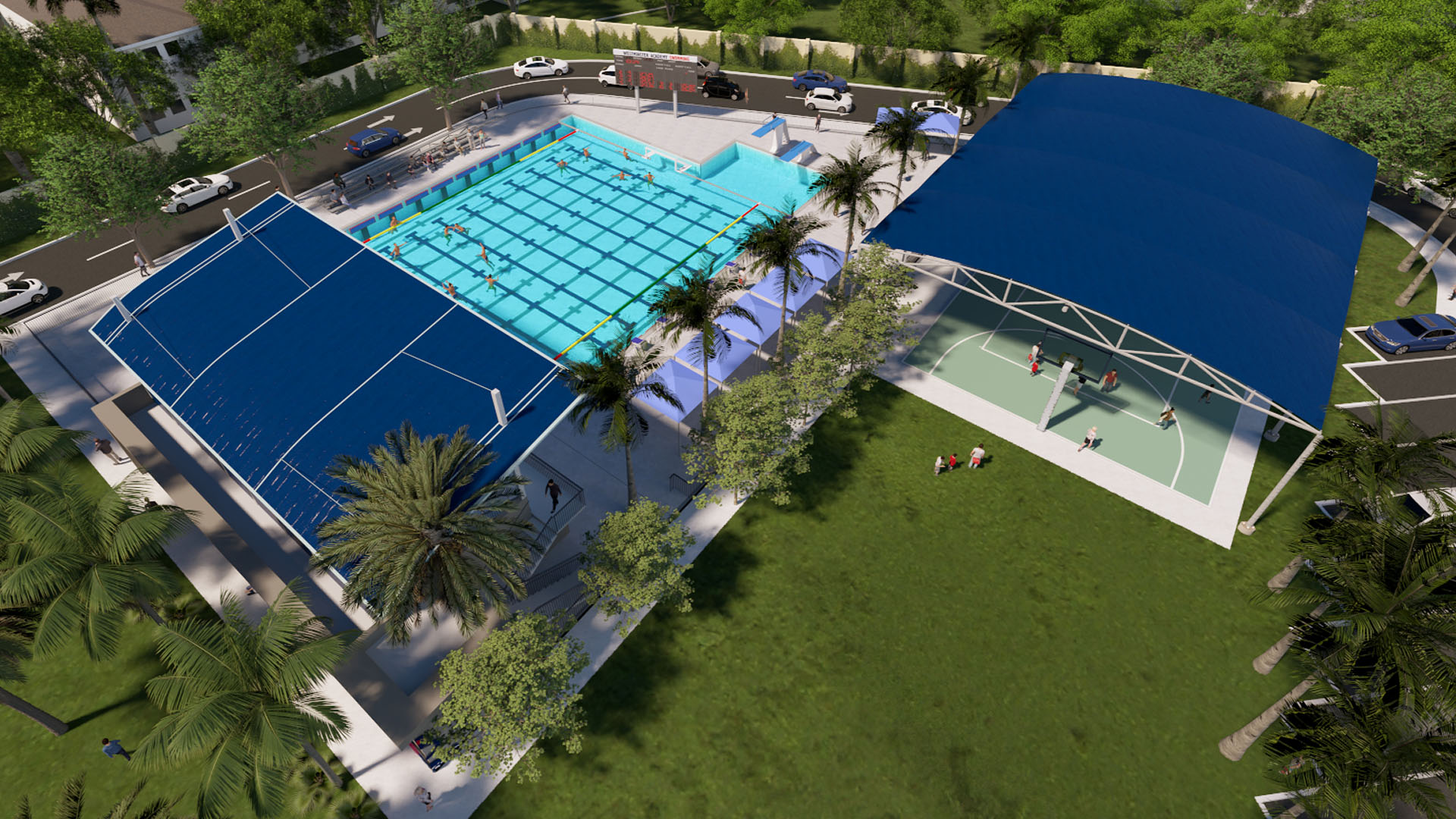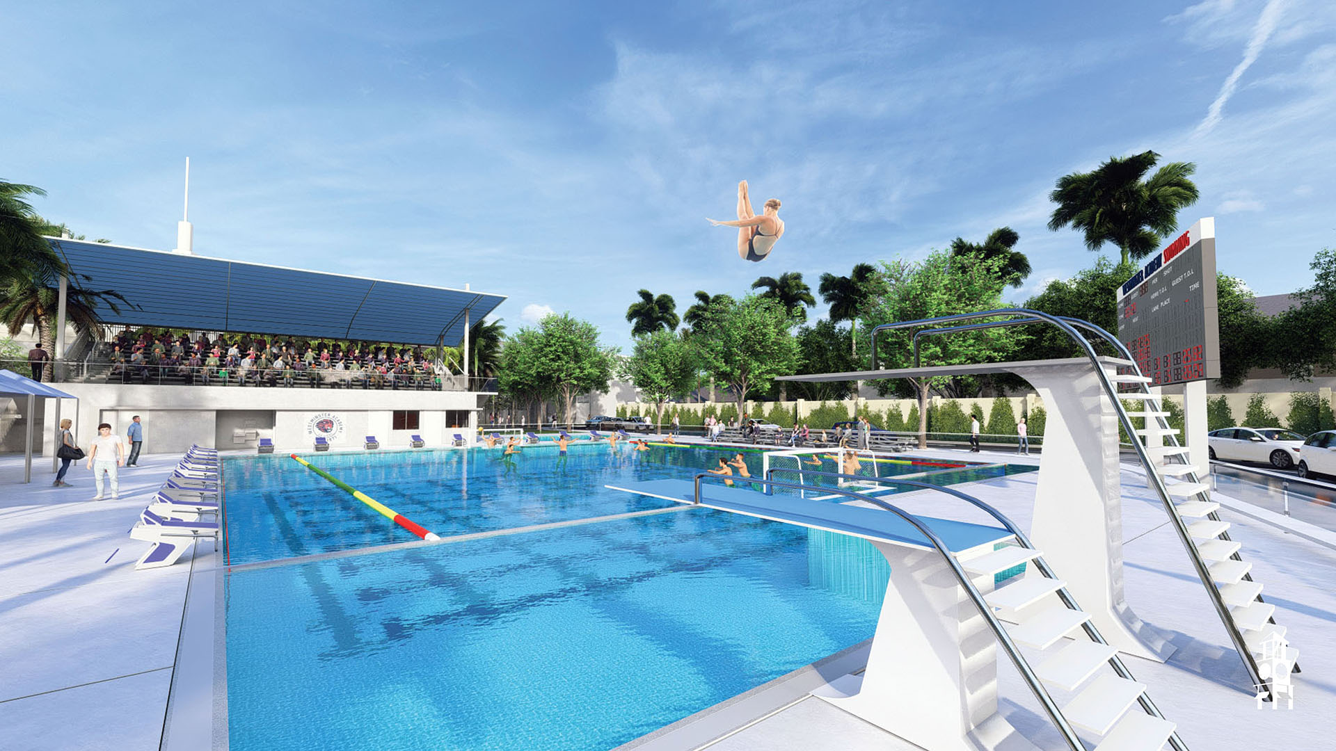 The initial phase of the Next Chapter Capital Campaign includes the design of the master site plan, the acquisition of north campus land, demolition, and site preparation for a community lawn and staff parking. The centerpiece is a new aquatic complex, along with an athletic pavilion and an interior perimeter road.
